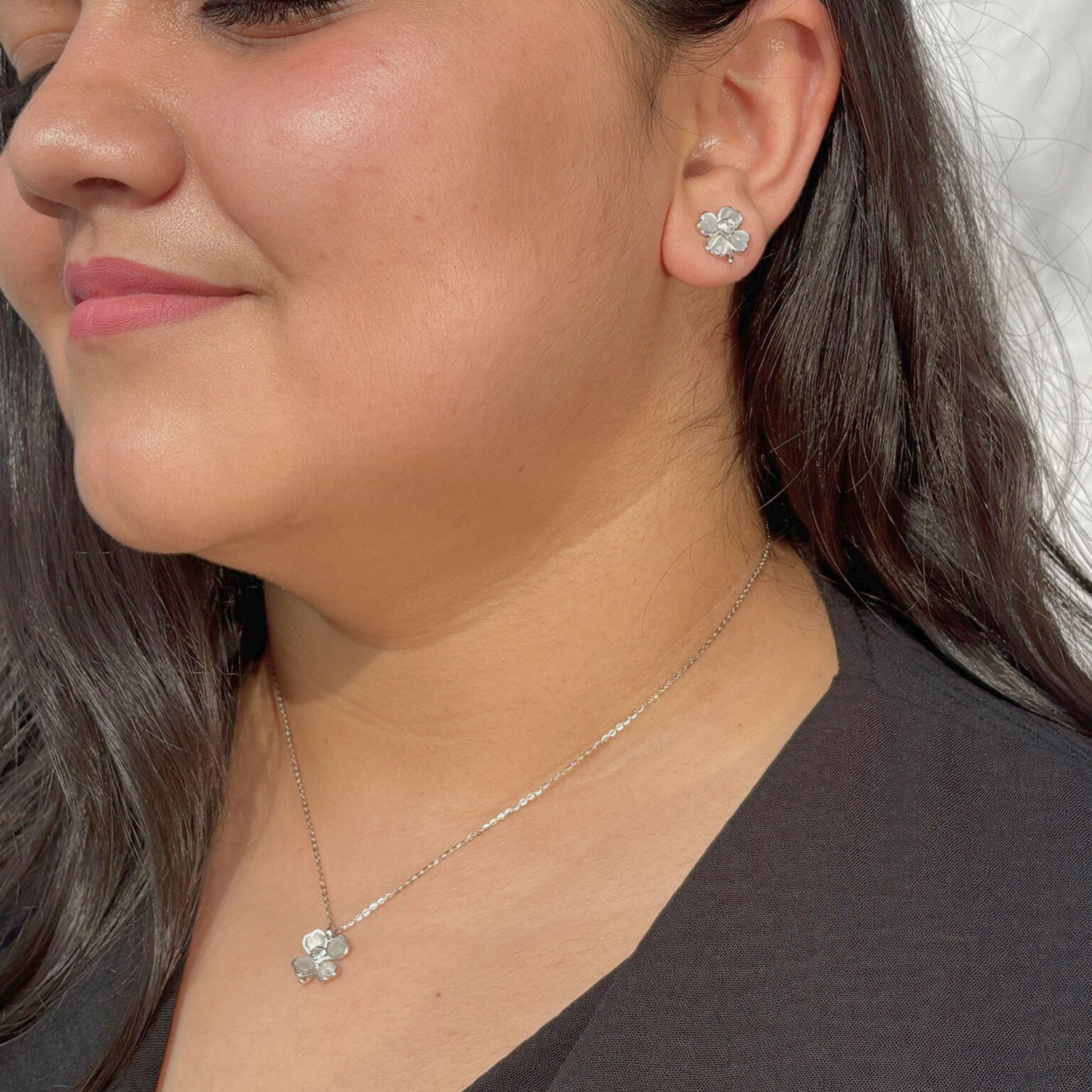 Delicate and elegant, the Clover Heart Set is crafted from 925 Sterling Silver and highlighted with luminous Moonstone detailing. The soft clover-heart design blends charm and grace, creating a look that feels timeless yet effortlessly modern.